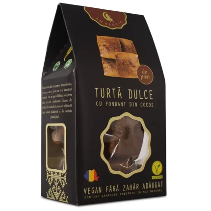 Turta dulce vegana si fara zahar adaugat, cu grau integral care regleaza echilibrul tranzitului intestinal.